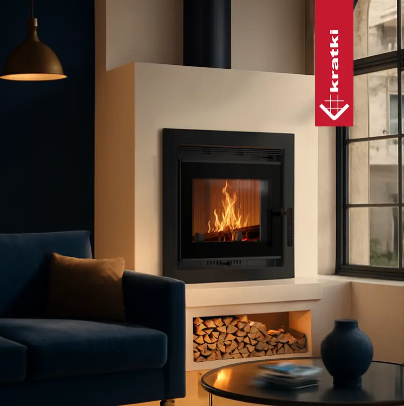 Front wkładu wyposażony w dekoracyjną szybę optycznie powiększa palenisko, sprawiając, że wizja ognia staje się centralnym punktem salonu. Kominek świetnie sprawdzi się zarówno w przytulnych, tradycyjnych wnętrzach, jak i w surowych, nowoczesnych przestrzeniach.