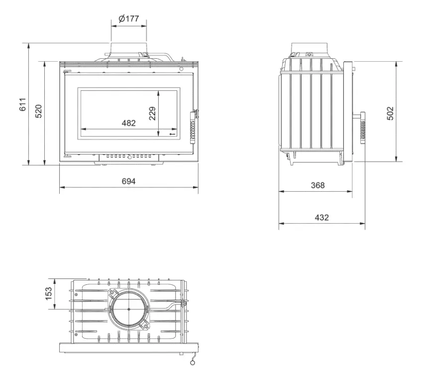 Konstrukcja wkładu NEL opiera się na masywnym żeliwie oraz użytej na froncie wysokogatunkowej stali oraz ceramice żaroodpornej, co zapewnia bezpieczeństwo i niezawodność przez długie lata eksploatacji. Dbałość o detale widoczna jest w każdym elemencie - od precyzyjnego wykonania po funkcjonalne dodatki. Ozdobny płotek wewnątrz paleniska zabezpiecza drewno przed wypadaniem, a popielnik typu szuflada ułatwia opróżnienie wkładu z resztek popiołu.