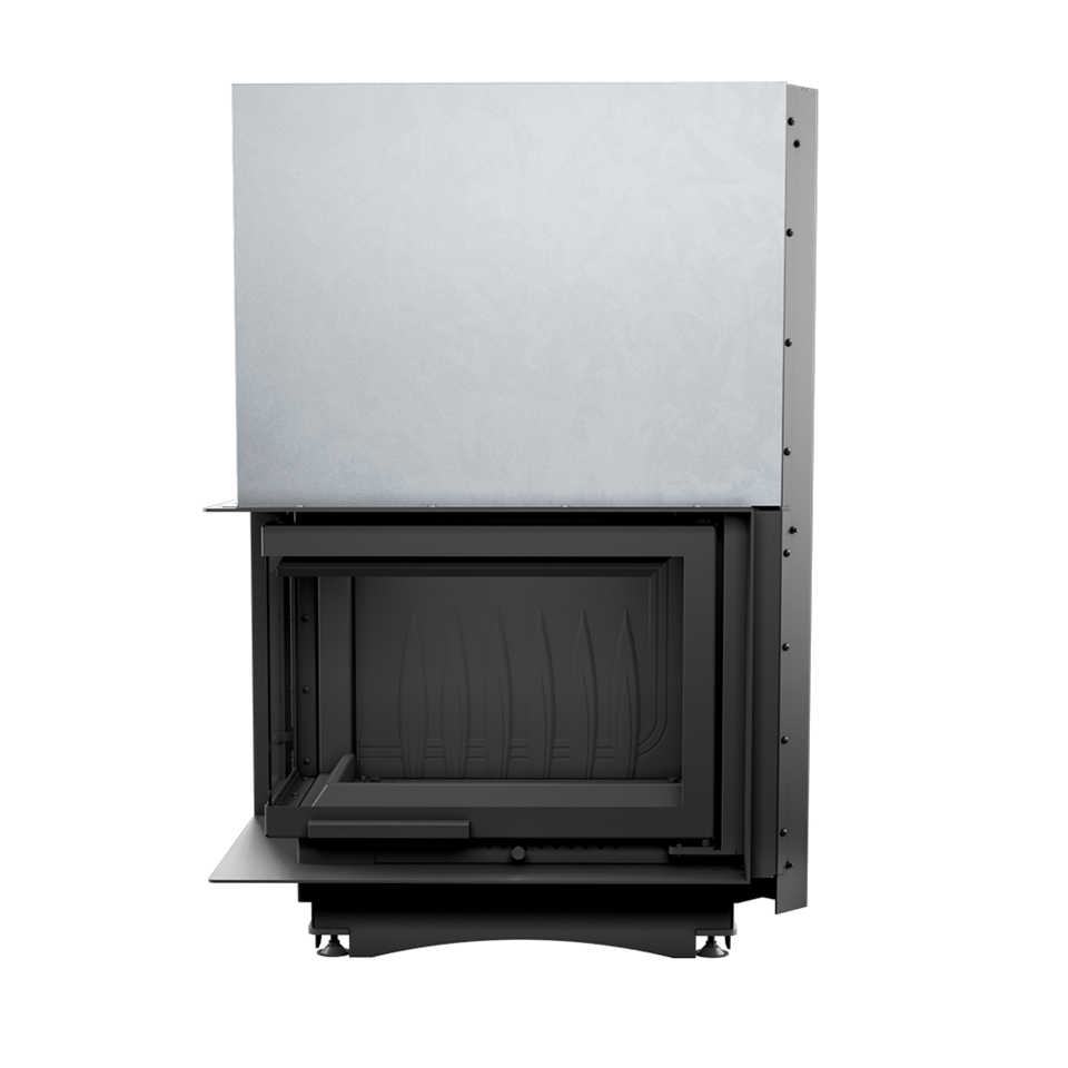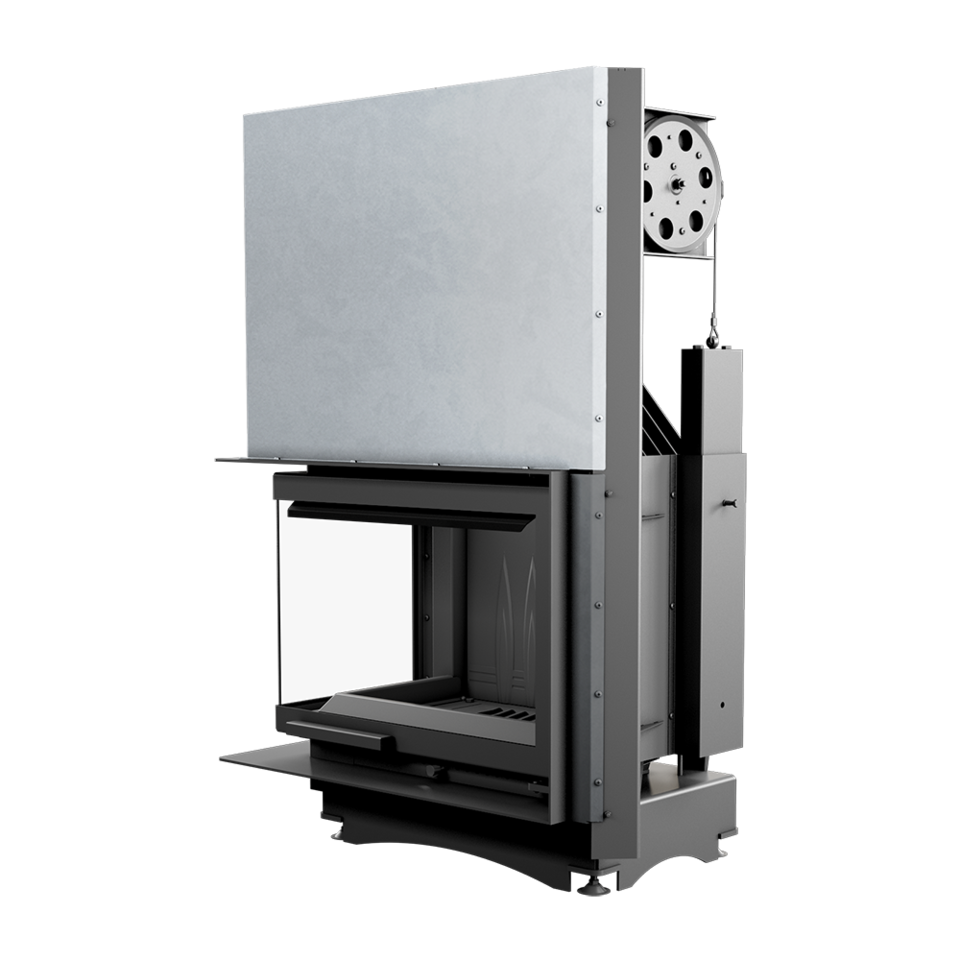 Dzięki podnoszonym i opuszczanym drzwiczkom łatwo załadujemy żądaną ilość drewna a mechanizm umożliwiający boczne otwarcie drzwiczek ułatwi czyszczenie szyby. System unoszenia drzwi został zbudowany w oparciu o przeciwciężar z linką stalową pracujący na łożyskowanym bloczku w prowadnicach, co umożliwia cichą i bezawaryjną pracę.