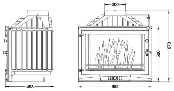 - Demontowalny ogranicznik drewna - ułatwia czyszczenie wnętrza paleniska