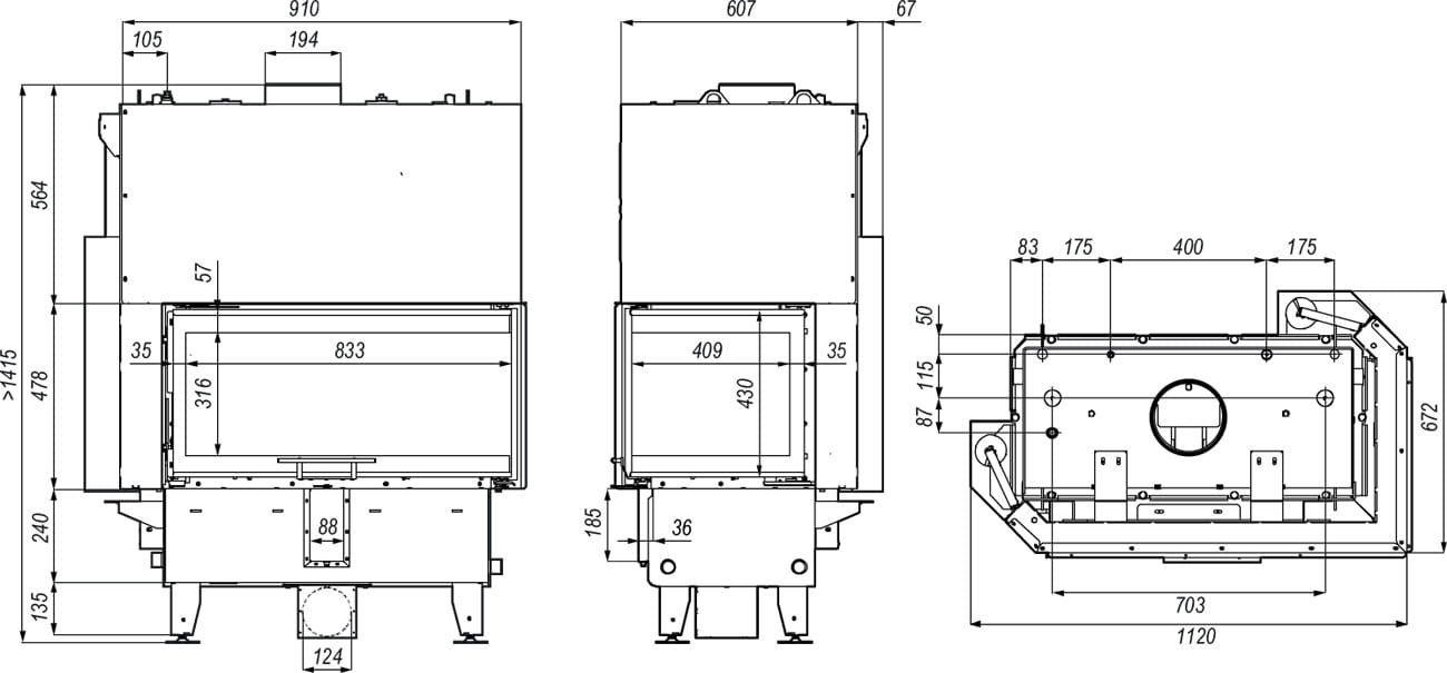 • Demontowalna górna część kominka ułatwiająca transport i montaż