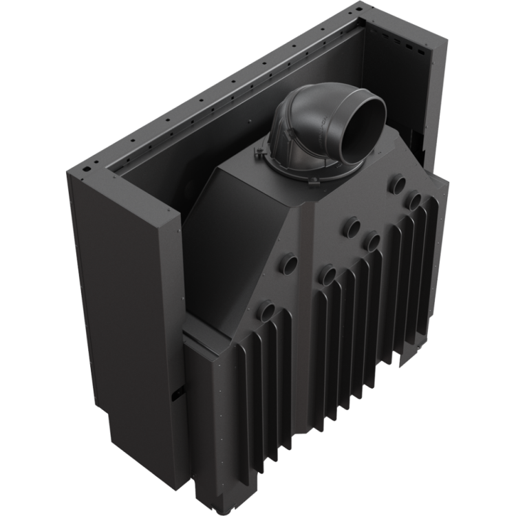 Wkład bezrusztowy - dopalanie na popiele, co oznacza, że opał wypala się na drobny popiół, którego pozostaje minimalna ilość. Uzyskana w ten sposób energia cieplna z drewna zostaje maksymalnie wykorzystana. Płyta dolna wkładu znacznie obniżona w stosunku do drzwi.