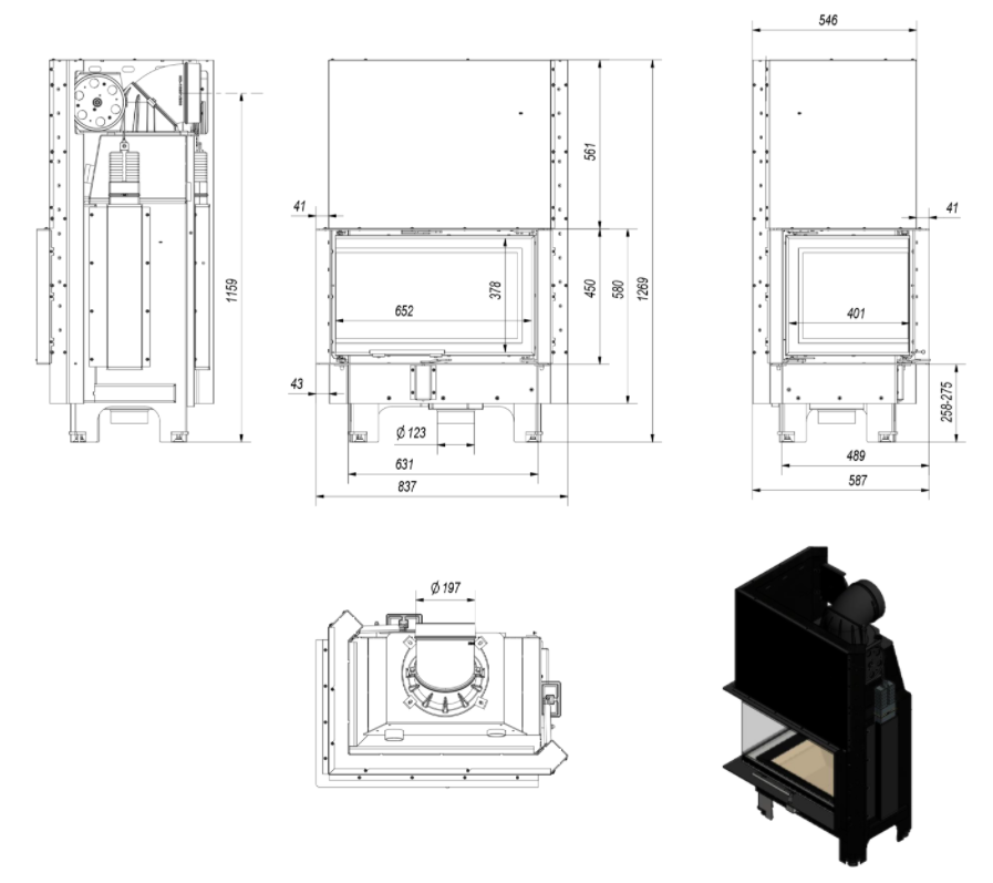 Potrójny system dopowietrzenia komory spalania: powietrze pierwotne - skierowane jest na płytę, na której odbywa się spalanie; powietrze wtórne dostarczane jest otworami w tylnej ścianie. Dodatkowo we wkładzie zastosowany jest system czystej szyby (kurtyna powietrza).
