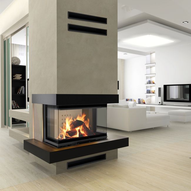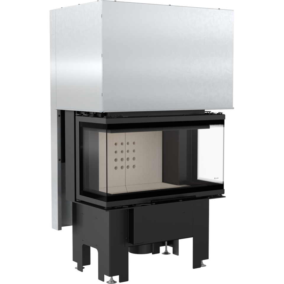 zwraca uwagę nowoczesnym designem i estetyką wykończenia. Zachwyca harmonijną wizją ognia, nadając wnętrzu niepowtarzalny styl. Ciepło promieniuje nie tylko frontalnie, ale również na boki. Kominek, wyposażony jest w pojedynczą, dekoracyjną szybę typu glass, dzięki której wygląda elegancko i nowocześnie. Zastosowanie tego rozwiązania optycznie powiększa front wkładu i podkreśla wizję ognia. Drzwi wkładu posiadają wygodny reling, ułatwiający otwarcie drzwiczek do góry.