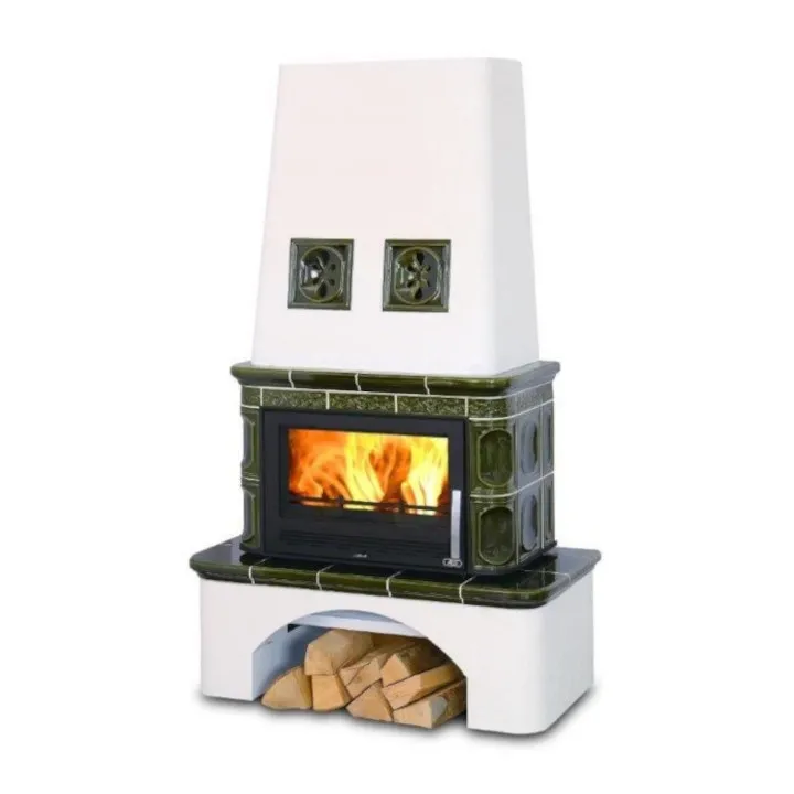 Piec kaflowy Laponia od renomowanego czeskiego producenta kominków ABX, to nowoczesne stalowe palenisko o mocy 14,6 kW, z wymiennikiem ciepłowodnym o mocy 10,5 kW, osadzone na kaflowym cokole i obudowane kaflami w trzech kolorach do wyboru.