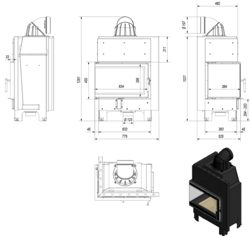 Wykonany z wysoko gatunkowej stali korpus i front odporny na działanie bardzo wysokich temperatur.