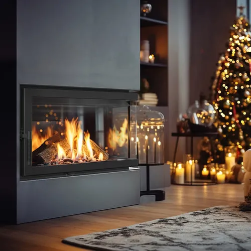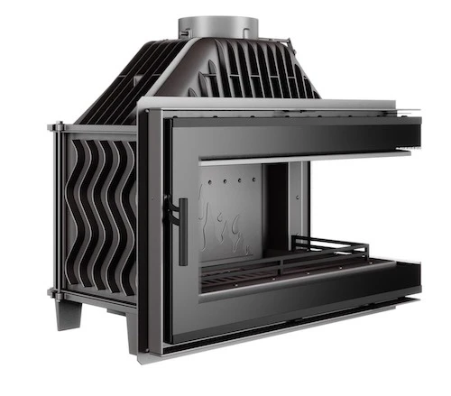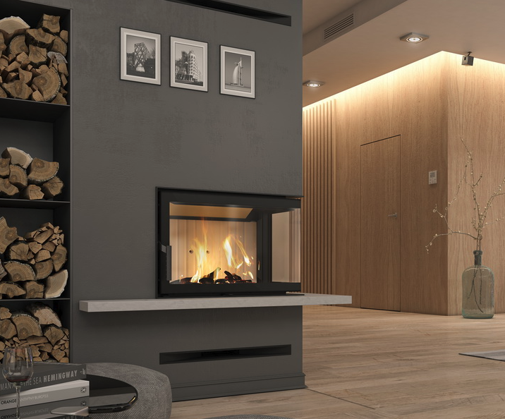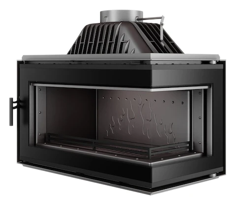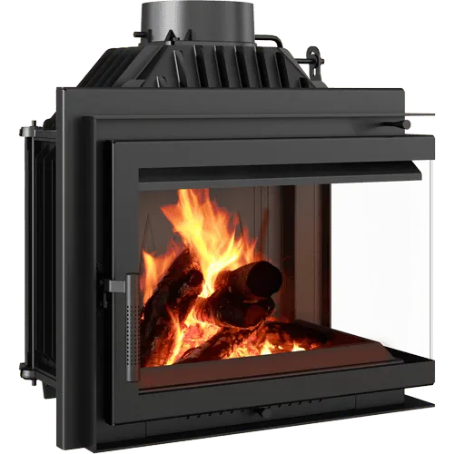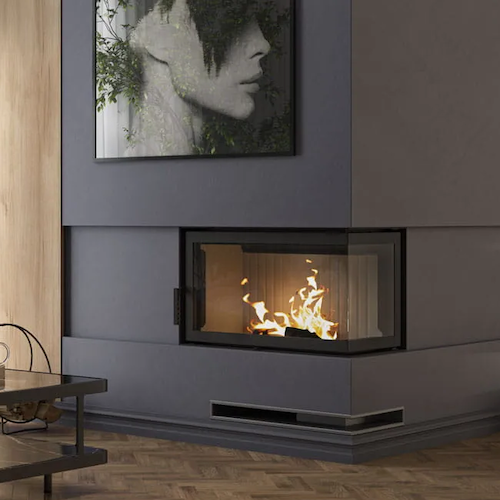 Narożne wkłady kominkowe to obecnie najbardziej popularny rodzaj kominków na rynku. Dwie szyby połączone pod kątem prostym dają w szeroką wizję płomienia, który widoczny jest z dwóch stron. Daje to możliwość oglądania ognia z kilku miejsc w domu.