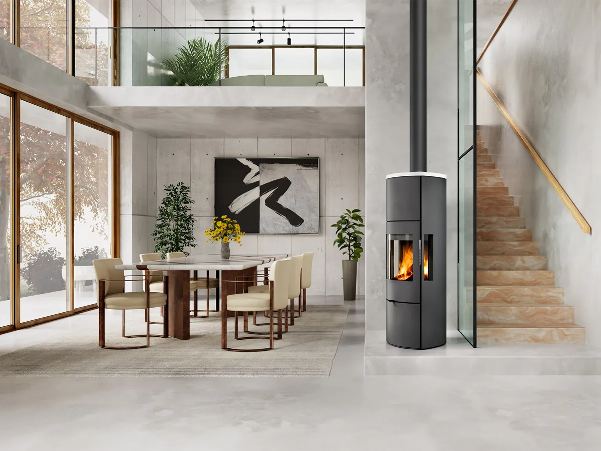 Piece kominkowe Parla 3S nadają się do domów energooszczędnych i z rekuperacją. Posiadają system CDP czyli Centralne Doprowadzenie Powietrza, które w 100% pobierane jest z zewnątrz budynku. Konstrukcja pieca pozwala na wybór jednego z dwóch sposobów odprowadzania spalin, górnego lub tylnego. Czystą szybę zapewnia ukierunkowany napływ powietrza wtórnego, tak powstała kurtyna powietrzna odpycha dym od szyby. Komora spalania wyłożona jest wysokiej jakości kształtkami z prawdziwego szamotu. Regulacja dopływu powietrza pierwotnego i wtórnego może być kontrolowana za pomocą jednego elementu sterującego. W dolnej części pieca znajduje się zamykany schowek na drewno, który pozwala na przechowywanie mniejszej ilości drewna lub narzędzi kominkowych.