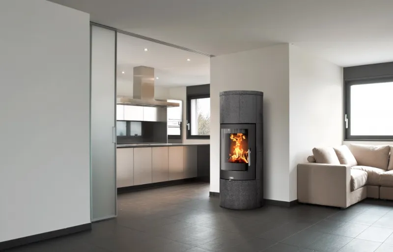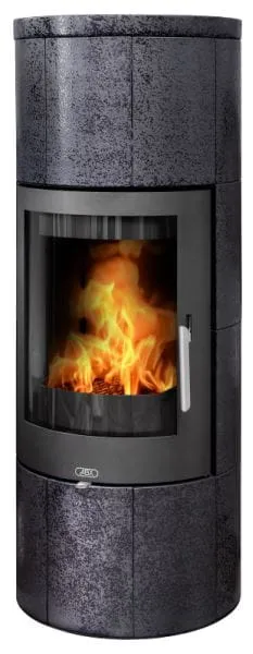 Piec kaflowy Galie od renomowanego czeskiego producenta kominków ABX, to nowoczesne stalowe palenisko o mocy 6 kW, o cylindrycznym kształcie, obudowane dużymi kaflami w pięknym kolorze.