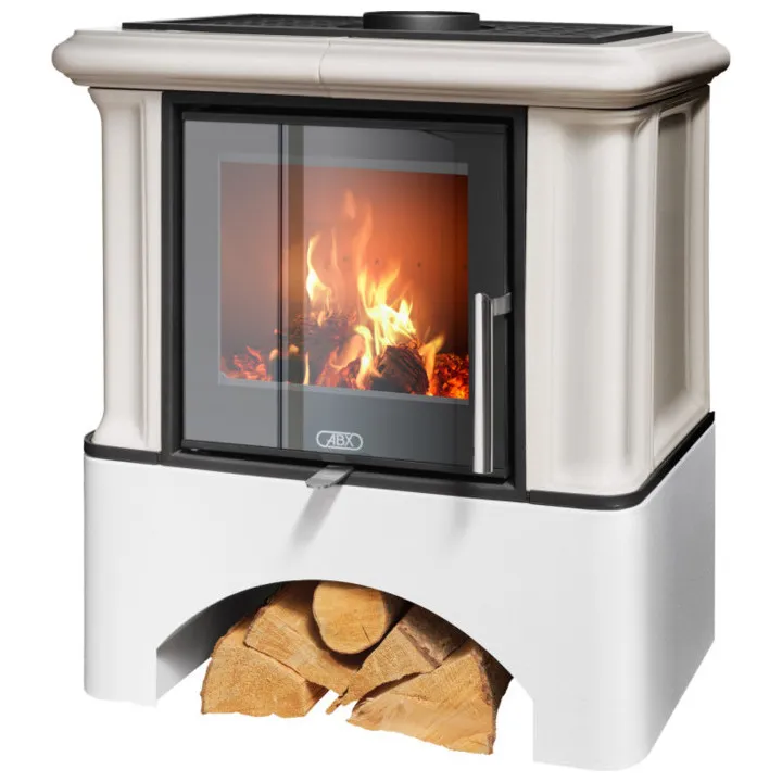 Piec kaflowy Ikaria Exclusive Cokół Biały od renomowanego czeskiego producenta kominków ABX, to nowoczesne stalowe palenisko o mocy 7 kW, osadzone na białym stalowym cokole i obudowane kaflami w pięciu kolorach do wyboru.