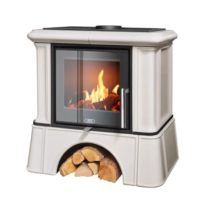 Piec kaflowy Ikaria Exclusive Cokół Kaflowy od renomowanego czeskiego producenta kominków ABX, to nowoczesne stalowe palenisko o mocy 5 kW, osadzone na kaflowym cokole i obudowane kaflami w pięciu kolorach do wyboru.