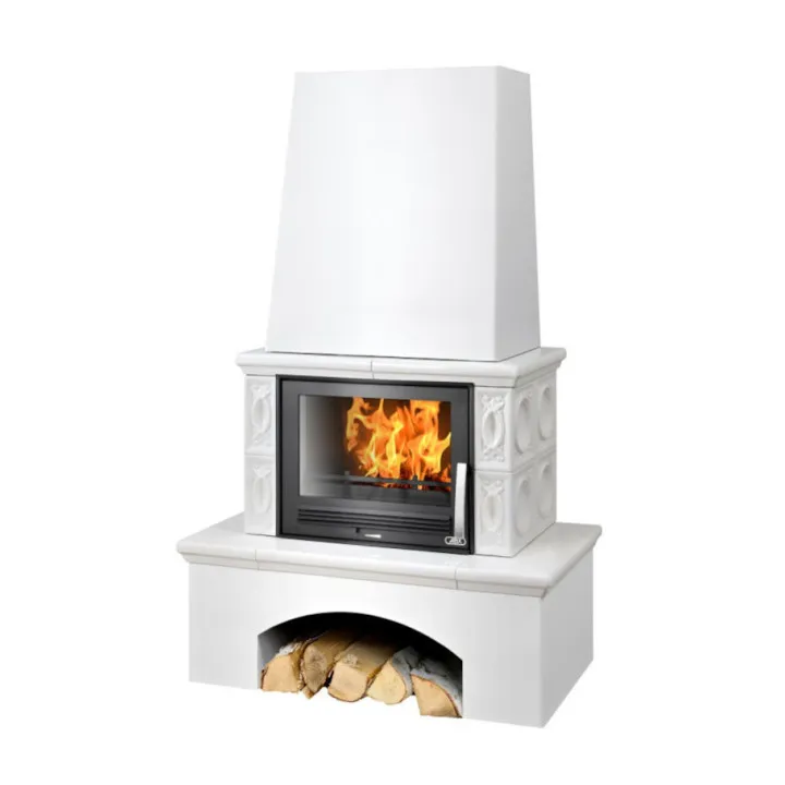 Piec kaflowy Lombardia od renomowanego czeskiego producenta kominków ABX, to nowoczesne stalowe palenisko o mocy 6 kW, osadzone na białym stalowym cokole i obudowane kaflami w trzech kolorach do wyboru.