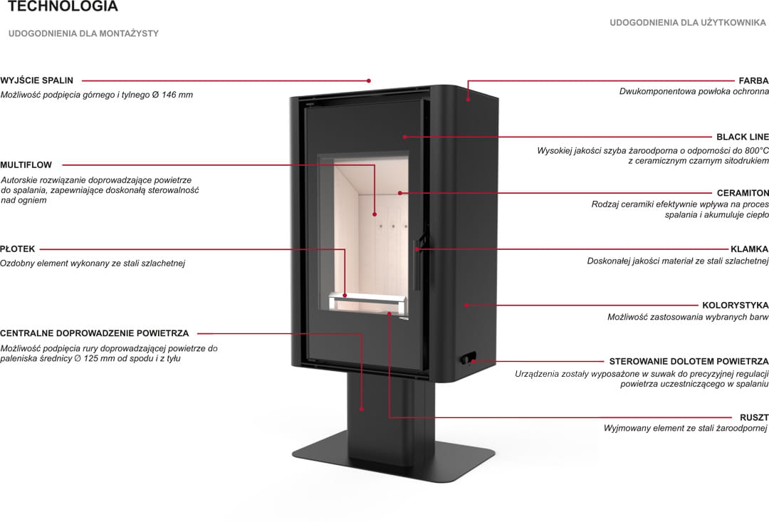Piecyk dostępny w trzech wersjach: SOLUM w zwartej obudowie, TOP- na nóżce oraz wersji bazowej LOG z wnęką na drewno.