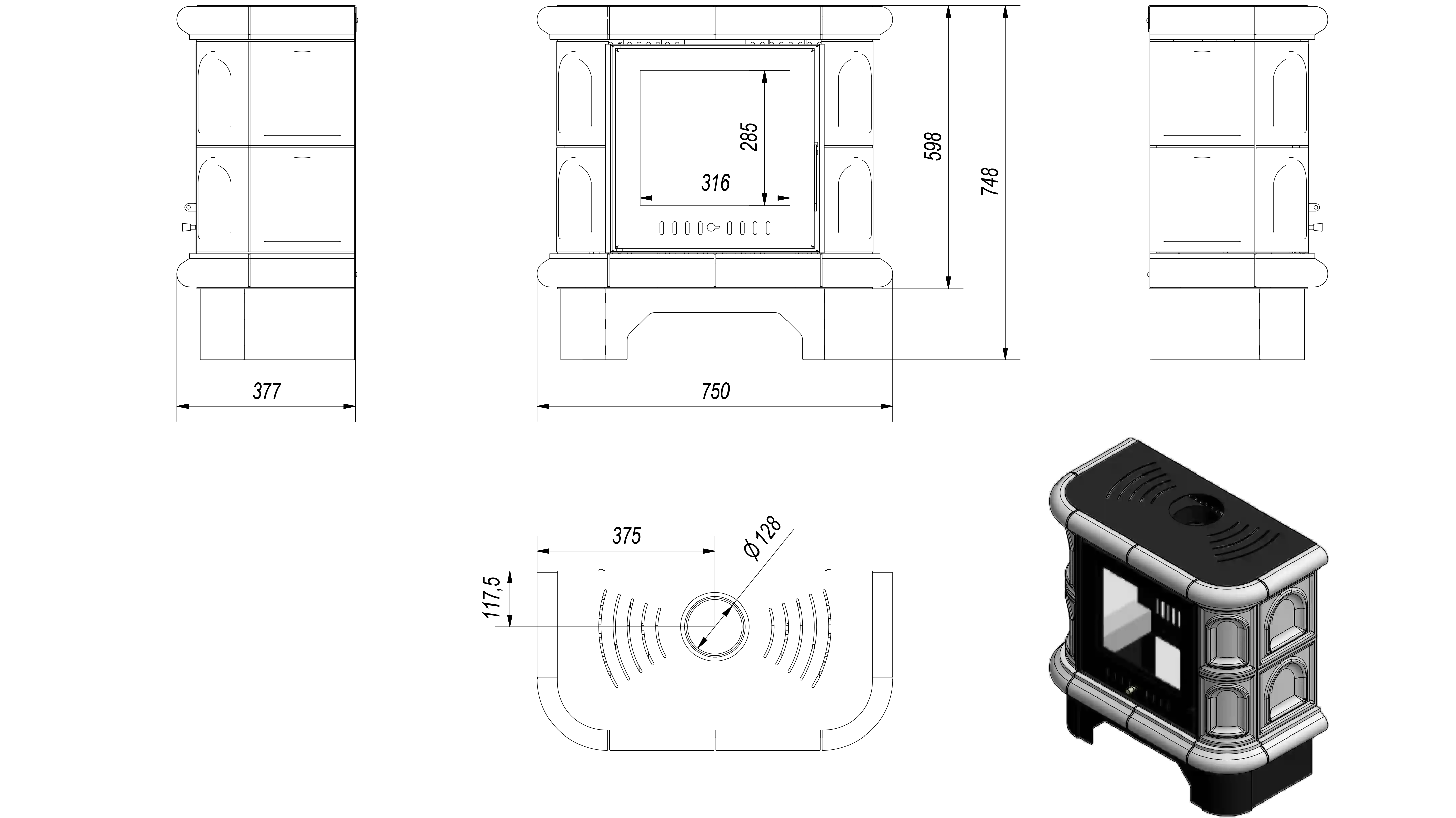Efektywne spalanie i dłuższe utrzymywanie temperatury, dzięki wyłożeniu komory spalania TERMOTEC - materiałem akumulującym ciepło, który podwyższa temperaturę w komorze.