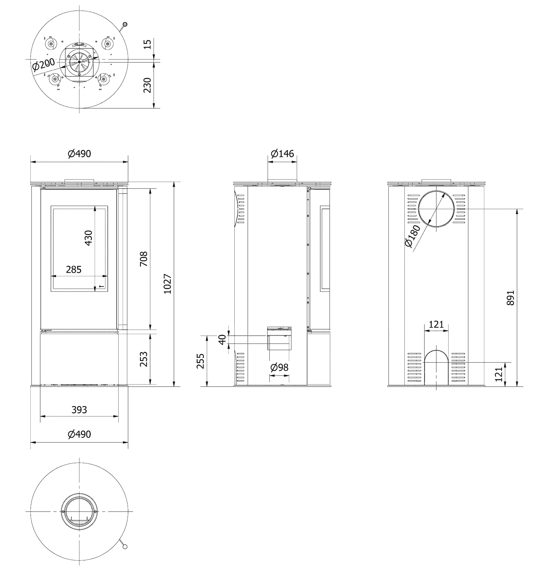 Piec stalowy Skadi fi 150 mm 5,5 kW