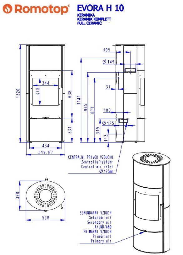 Evora H ceramika od czeskiego producenta Romotop, to nowoczesny stalowy piec kominkowy o mocy nominalnej 5,1 kW z obudową z prawdziwych kafli i możliwością wzmocnienia kominka o zestaw akumulacyjny.