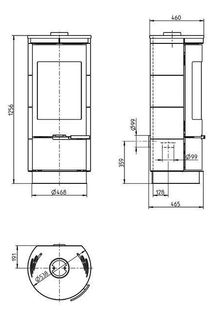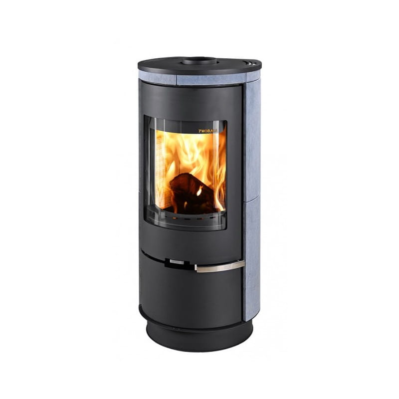 Dzięki dużej wadze tj. 209 kg, kamień Serpentino oddaje ciepło do pomieszczenia przez wiele godzin. Duża, półokrągła szyba zwiększająca wizję ognia. Bardzo solidna konstrukcja zapewnia bezawaryjną pracę przez wiele lat. Z wbudowanym seryjnie systemem oczyszczania szyby (kurtyna powietrzna). Wnętrze wyłożone wermikulitem.