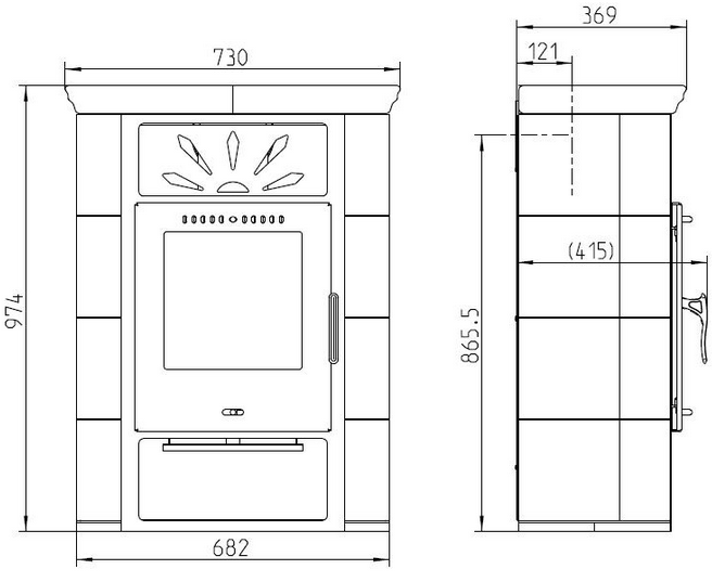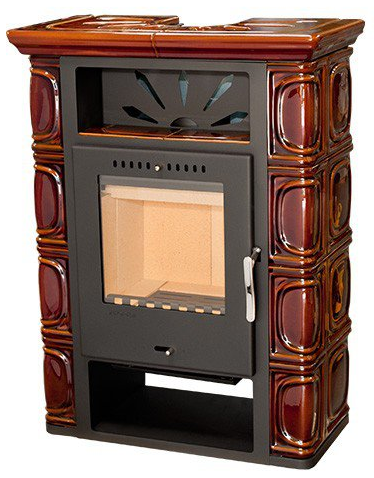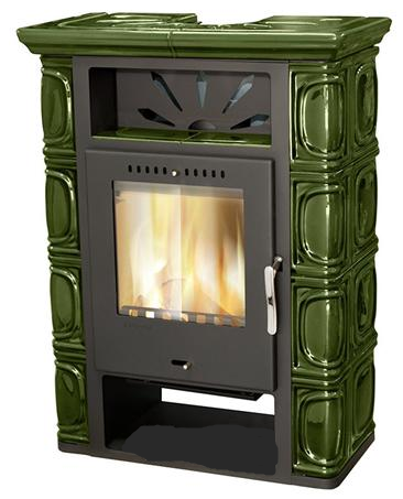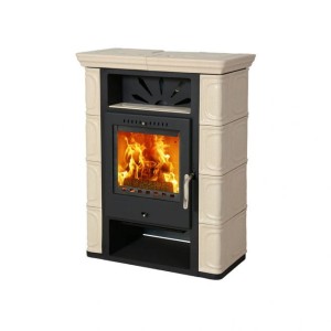 Wnętrze wyłożone szamotem dla zapewnienia skutecznego i czystego spalania drewna. Wykonany z blachy pomalowanej proszkowo na czarno i ozdobiony klasycznymi ceramicznymi kaflami w kolorze kremowym. Idealnie odnajdzie się w stylowych pomieszczeń urządzonych w klimacie retro.