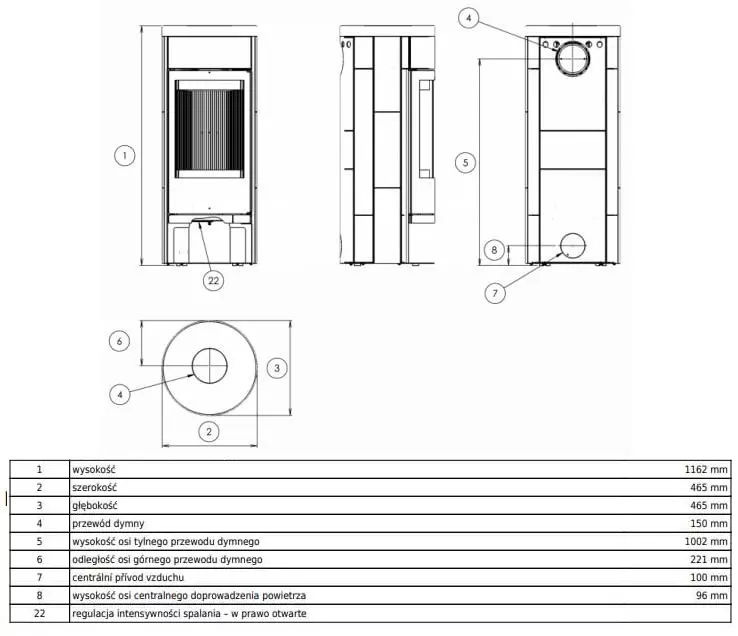 Karta techniczna pieca stalowego Vigo