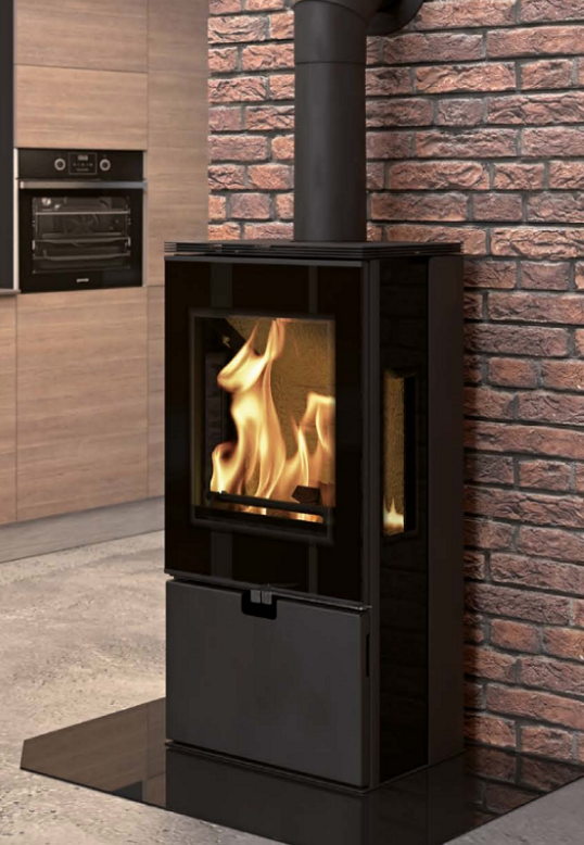 Piec Stalowy Thorma Wiesbaden na drewno. Ciepło oddawane jest za pomocą promieniowania z całej powierzchni obudowy. Idealnie wpasowuje się w nowoczesne i minimalistyczne wnętrza.