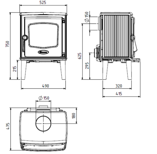 Rysunek techniczny pieca żeliwnego Dovre 525 CB