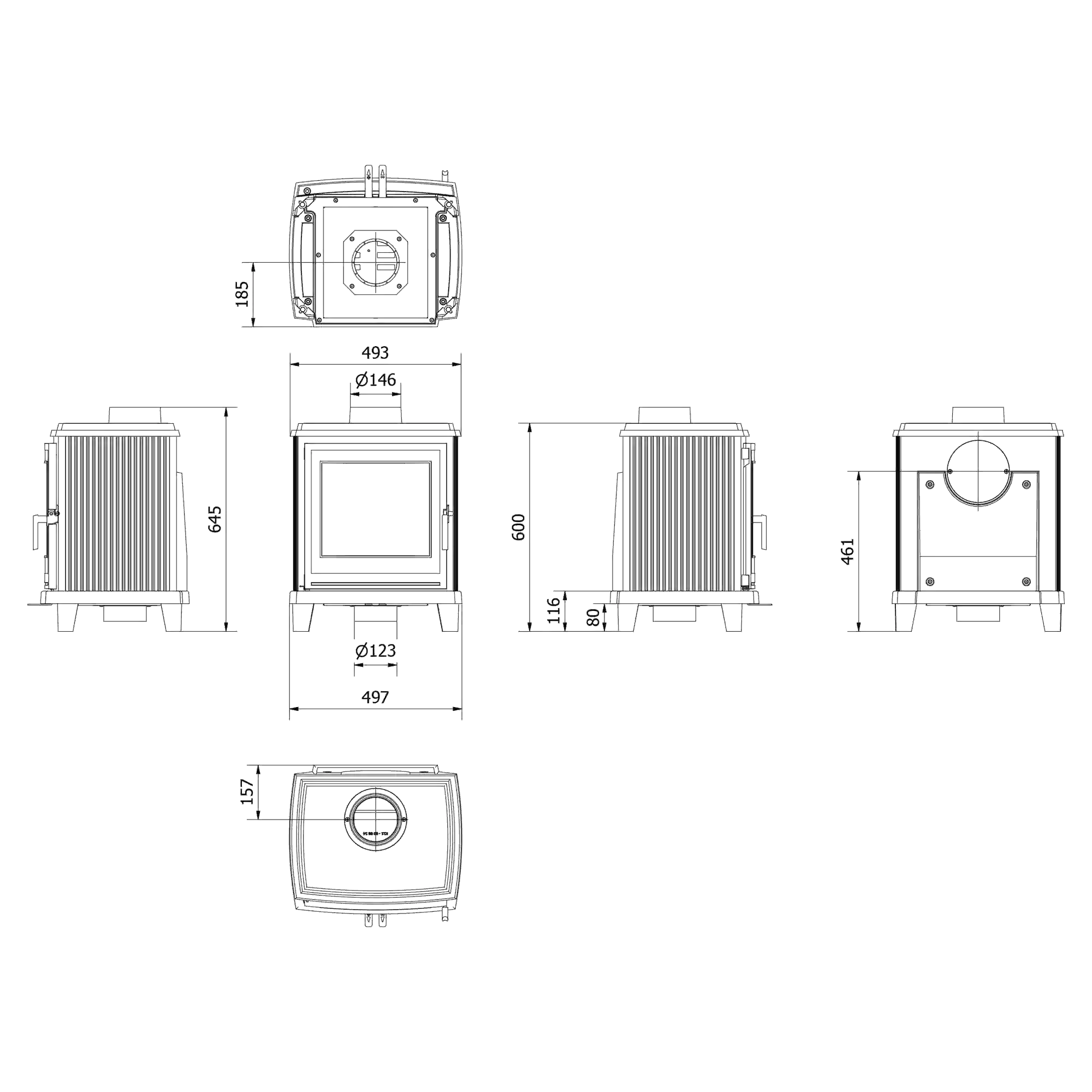 Piec żeliwny K11 zapewnia wygodę użytkowania na każdym etapie. Klasyczny front wyposażony w ceramikę żaroodporną z odpornością cieplną aż do 600 °C. System zimnej klamki umożliwia demontaż̇ uchwytu, dzięki czemu klamka pozostaje wystarczająco chłodna, aby można było bezpiecznie chwycić́ i otworzyć́ lub zamknąć́ drzwi pieca. Szuflada na popiół ułatwia usuwanie pozostałości po spalonym drewnie, zapewniając czystość i porządek wokół piecyka. Dodatkowo, ozdobny płotek nie tylko dodaje estetyki, ale także ułatwia utrzymanie czystości i chroni przed wypadaniem drewna.