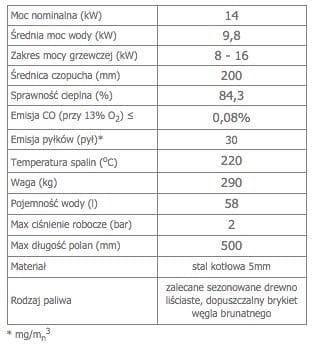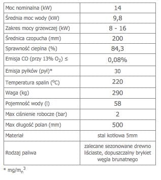 Moc nominalna: 14 kW (do 140 m²)