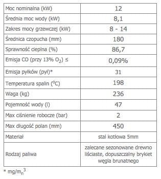 10. Wkład posiada wbudowaną wężownicę. Korpus płaszcza wodnego wzmocniony jest szpilkami.