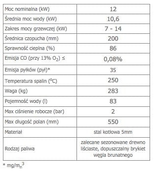10. Wkład posiada wbudowaną wężownicę. Korpus płaszcza wodnego wzmocniony jest szpilkami.