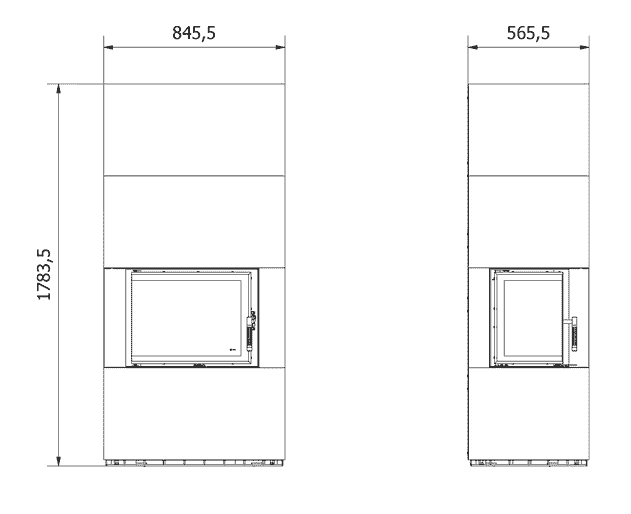 Rysunek techniczny kominka modułowego Floki Box Lewy