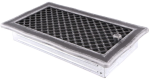 Kratka kominkowa stylowa z żaluzją 16x32cm - kolor: srebrna patyna. Kratka kominkowa stylowa – przeznaczona do nawiewu ciepłego powietrza w sposób grawitacyjny lub wymuszony, a także do wywiewu powietrza wentylacyjnego. Wykonana jest z elementów stalowych odpowiednio przygotowanych w procesie technologicznym. Kratkę kominkową montuje się w czopuchach kominków lub w ścianach. Produkowana w rozmiarach standardowych kafli kominkowych. Kratka posiada uchylne drzwiczki. Kratki z żaluzją nie należy montować w czopuchach kominków.