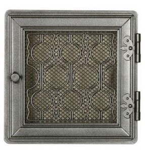 Kratka kominkowa stylowa 21x21cm - kolor: grafit. Kratka kominkowa stylowa – przeznaczona do nawiewu ciepłego powietrza w sposób grawitacyjny lub wymuszony, a także do wywiewu powietrza wentylacyjnego. Wykonana jest z elementów stalowych odpowiednio przygotowanych w procesie technologicznym. Kratkę kominkową montuje się w czopuchach kominków lub w ścianach. Produkowana w rozmiarach standardowych kafli kominkowych. Kratka posiada uchylne drzwiczki. Kratki z żaluzją nie należy montować w czopuchach kominków.