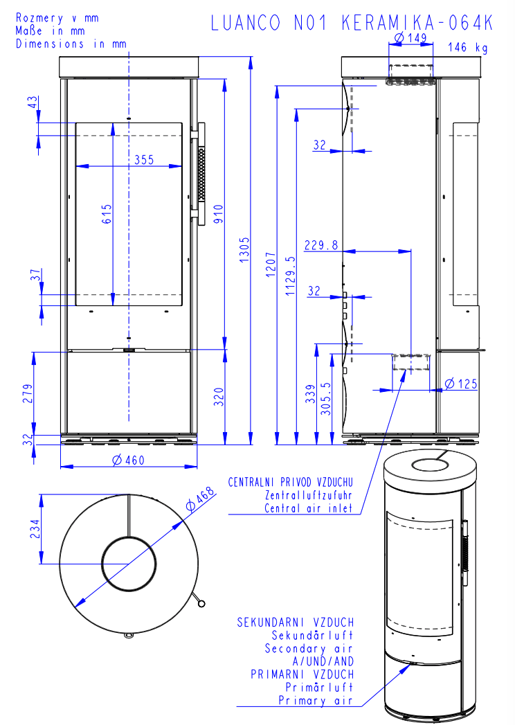 Piec wolno stojący LUANCO CERAMIKA jest dostosowany do tylnego lub górnego doprowadzenia przewodu dymnego. Nie jest przeznaczony do pracy stałopalnej. Przeznaczony jest do ogrzewania lub dogrzewania pomieszczeń.