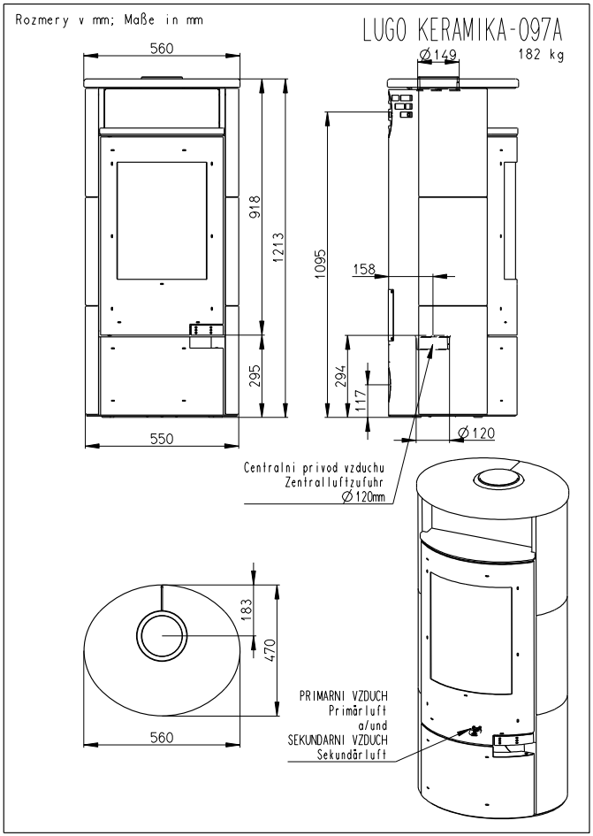 Piec wolno stojący LUGO 01 CERAMIKA to piec dla tych, którzy cenią klasyczną elegancję. Wyprodukowany z 2 warstw blachy stalowej o grubości 2 mm (na zewnątrz) oraz 3-4 mm (wewnątrz). Blacha pomalowana jest matowym, żaroodpornym lakierem. W piecu zastosowano dodatkowo okładziny ceramiczne, co podnosi jego estetykę oraz funkcjonalność.