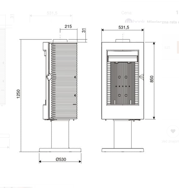 - Średnica wylotu spalin: 180 mm
