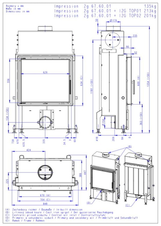 IMPRESSION 2g 67.60.01 - wkład kominkowy z podwójną szybą. - jasne wyłożenie