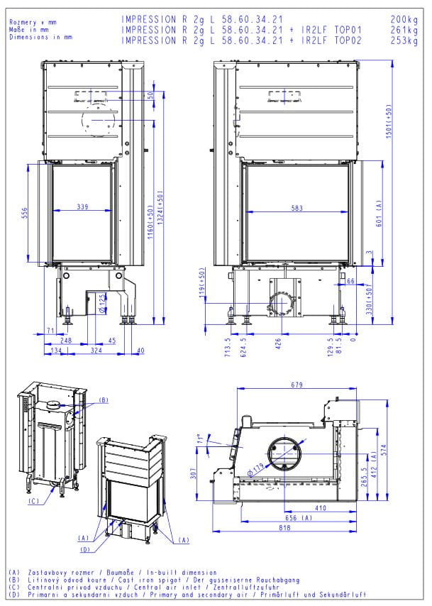 Wkład ROMOTOP IMPRESSION R/L 2g L 58.60.34.21 - narożny wkład kominkowy z wysuwanymi drzwiczkami i łączoną szybą - Prawy. - jasne wyłożenie