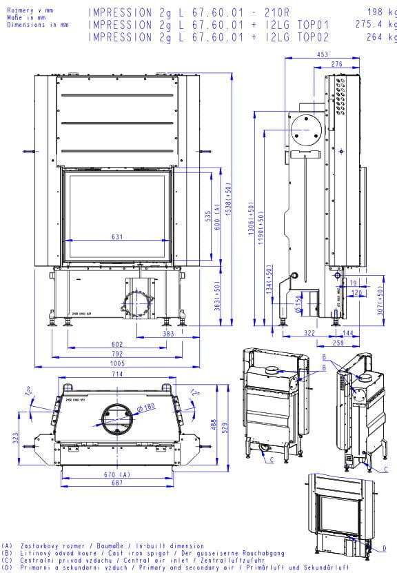 IMPRESSION 2g L 67.60.01 - wkład kominkowy z wysuwanymi drzwiczkami i podwójną szybą. - jasne wyłożenie