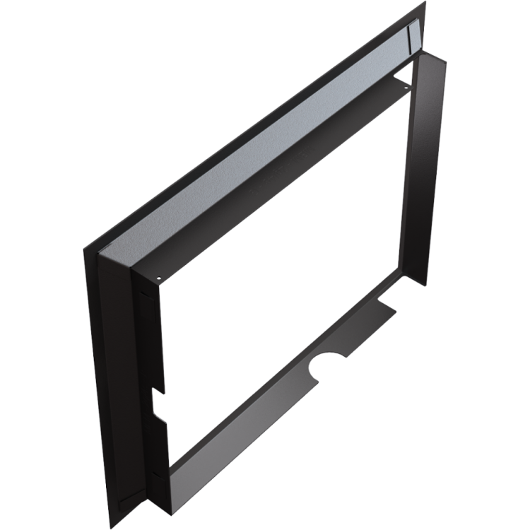 Nowoczesna stalowa ramka ozdobna do wkładu kominkowego powietrznego i z płaszczem wodnym MBM 10 z prostym frontem. Jej główną zaletą jest łatwy i szybki montaż. Instalację ramki można wykonać samemu, bez użycia dodatkowych narzędzi.