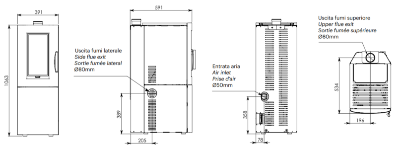 Powietrzny piecyk na pellet przeznaczony do ogrzewania jednego pomieszczenia. Piecyk na pellet Ravelli Alfa S ogrzewa pomieszczenie na zasadzie naturalnej konwekcji powietrza (jak piecyk na drewno), dzięki takiemu rozwiązaniu pracuje bardzo cicho.