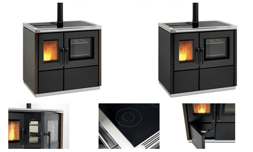 Kuchnia na pellet powietrzna przeznaczona do ogrzewania jednego pomieszczenia. Kuchnia na pellet Ravelli Mia 90 posiada wbudowany piekarnik z pomiarem temperatury i oświetleniem oraz ceramiczną płytę grzewczą z trzema miejscami do gotowania.