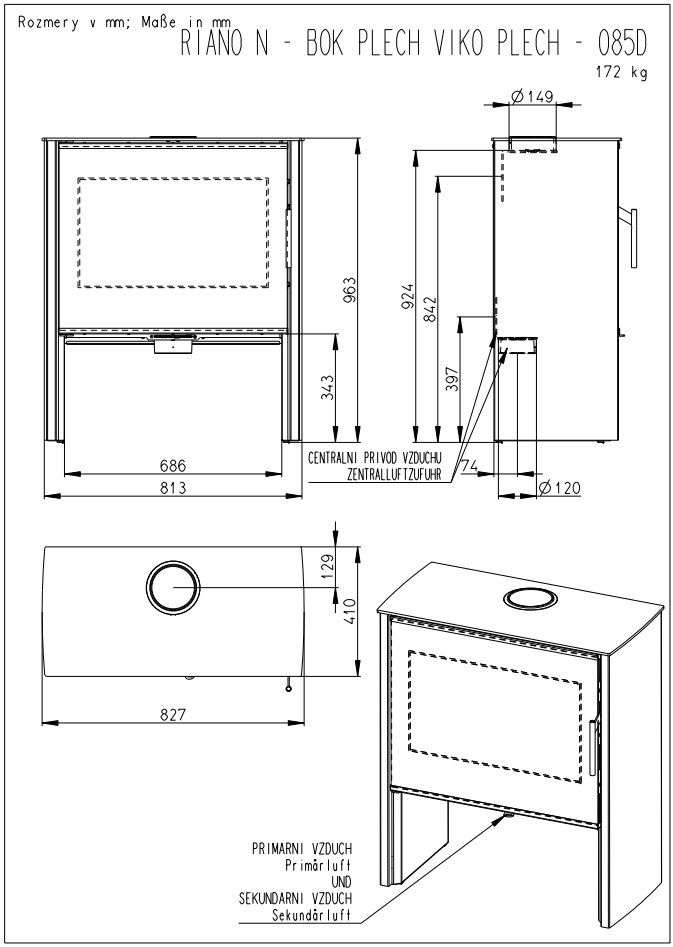 Kominek RIANO N01 metal o mocy 11 kW to wolnostojące urządzenie, spełniające normy EkoProjektu i posiadające dolot powietrza z zewnątrz.