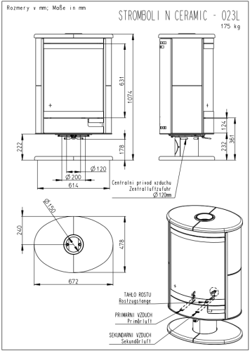 Piec wolno stojący STROMBOLI N 02 CERAMIKA jest dostosowany do górnego doprowadzenia przewodu dymnego. Nie jest przeznaczony do pracy stałopalnej. Przeznaczony jest do ogrzewania lub dogrzewania pomieszczeń.