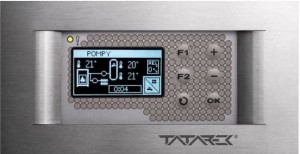 ZRT-08G - Zestaw sterujący z wyświetlaczem graficznym do obsługi układów grzewczych zasilanych z kominka z płaszczem wodnym, z regulacją dopływu powietrza do komory spalania za pośrednictwem przepustnicy i wyświetlaczem graficznym.