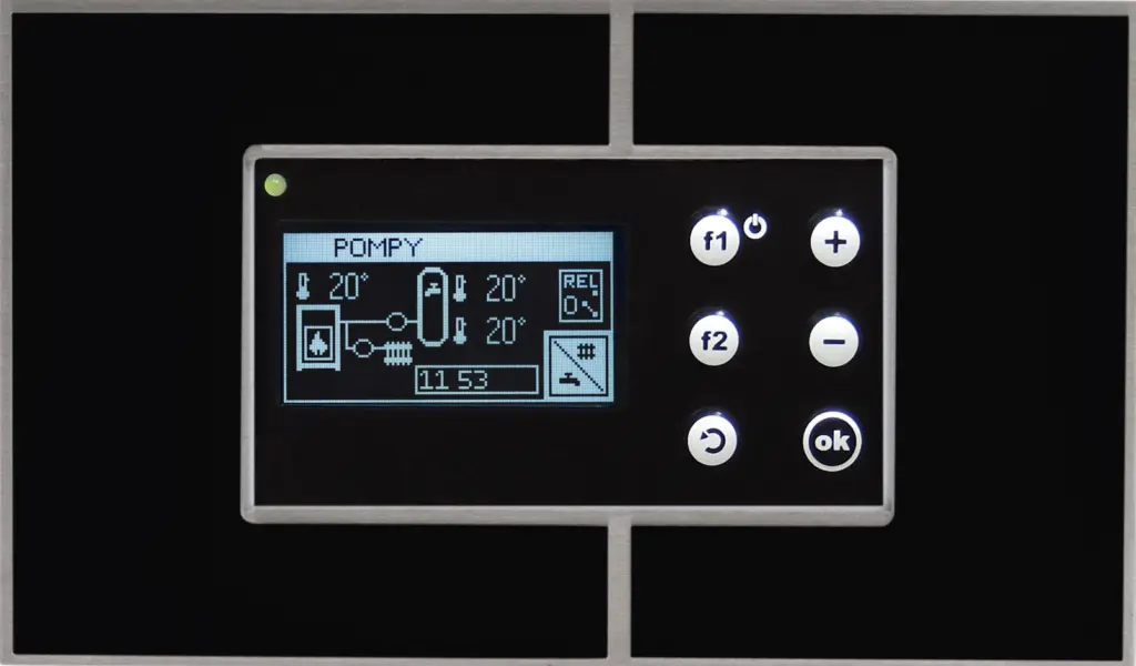– Funkcja blokady innego źródła ciepła w momencie gdy kominek dostarcza ciepło do instalacji.