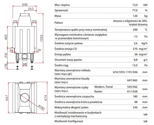 Wkład Dragon 2 Duo jest kominkiem wyprodukowanym w Polsce. Spełnia normy anty-smogowe EkoProjekt 2022 oraz restrykcyjne przepisy BimSchV 2. Kominek nadaje się do domów z rekuperacją i wentylacją mechaniczną.