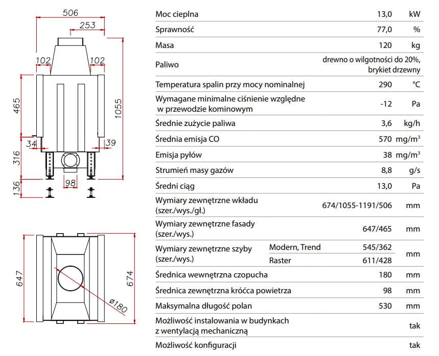 Moc nominalna: 13 kW (do 130 m²)