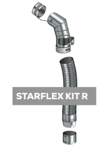 Starflex Kit R to elastyczne, uniwersalne podłączenie kominka do komina ceramicznego. System w wersji R zawiera kolanko regulowane z wyczystką, które ułatwia podłączenie kominka przysuniętego bardzo blisko ściany z kominem. Producentem jest lider na rynku ...