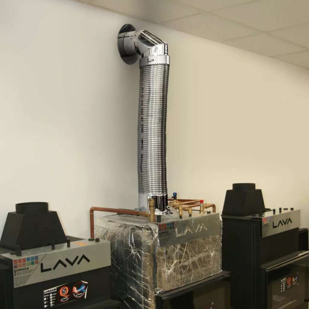 Jak to działa? To proste! Ustawiasz wkład kominkowy, wkładasz jedną stronę połączenia Starflex Kit do komina ceramicznego, drugą stronę na czopuch wkładu kominkowego i gotowe! Całe podłączenie trwa kilka minut. Zobacz wideo!