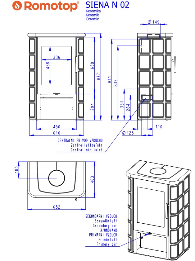 Siena N 02 to nowoczesne stalowe palenisko o mocy nominalnej 5,8 kW w obudowie z najwyższej jakości kafli w aż siedemnastu kolorach do wyboru.